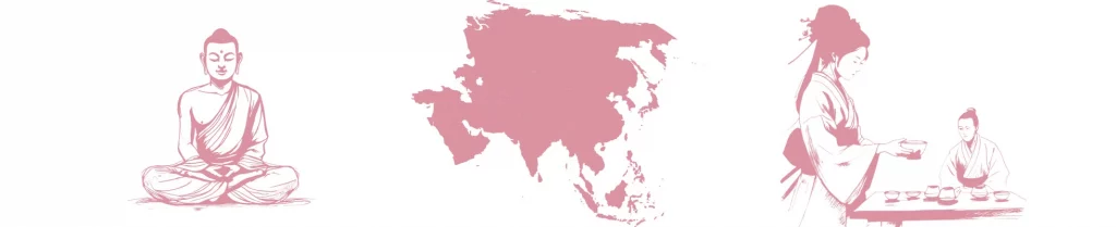 Une autre légende sur l’origine du thé provient de l’Inde, impliquant Bodhidharma, un moine bouddhiste qui aurait voyagé en Chine au VIe siècle pour diffuser le bouddhisme. Selon cette légende, Bodhidharma aurait médité pendant 9 ans sans dormir. Un jour, accablé par la fatigue, il s’endormit accidentellement. En se réveillant, il fut si frustré par son échec qu’il se coupa les paupières pour éviter de dormir à nouveau. Ses paupières tombèrent au sol et, selon la légende, prirent racine pour devenir des plants de thé. Bodhidharma aurait ensuite utilisé les feuilles de ces plants pour rester éveillé et continuer sa méditation.