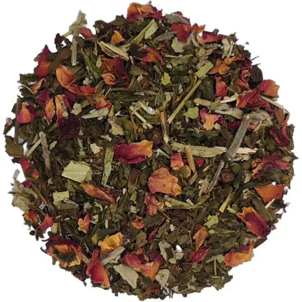 Pour les moments où vous avez besoin de concentration et de clarté mentale, ce mélange est parfait. Le Thé Vert se marie avec la fraîcheur de la menthe poivrée, la douceur des pétales de rose et la robustesse de la sauge et du poivre noir, créant un breuvage équilibré qui aide à clarifier l’esprit et à renforcer la concentration.