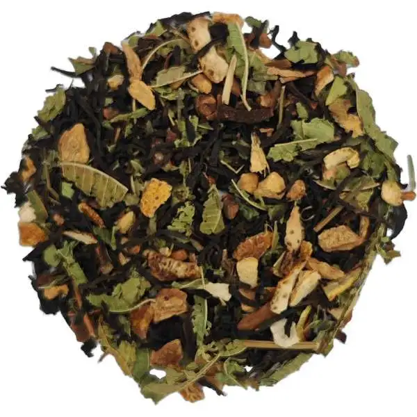Éveil et Vitalité | – Ingrédient : Thé Noir Assam (40%), Gingembre (20%), Écorces d'orange (15%), Cannelle (10%), Verveine Citronnelle (10%), Clous de girofle (5%) |