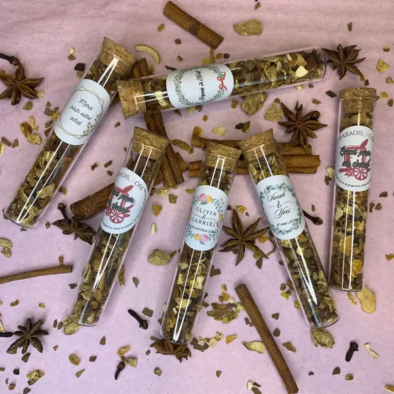 Pour toutes vos célébrations, les tubes à essai d’épices pour vin chaud offrent une touche authentique et chaleureuse. Que ce soit pour un repas d’entreprise, un événement personnel, ou une fête spéciale, ces délicieux mélange d’épices pour vin chaud sont des cadeaux uniques, élégants et personnalisables, parfaits pour marquer les esprits.